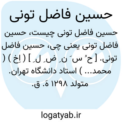 حسین فاضل تونی. [ ح ُ س َ ن ِ ض ِ ل ِ ] ( اِخ ) ( محمد... ) استاد دانشگاه تهران. متولد 1298 هَ. ق. ومتوفی 1381 هَ. ق. او راست: تعلیقات فصوص. ( ذریعه ج 7 ص 100 و ج 8 ص 154 ). یک سال پس از مرگ وی در دانشکده ادبیات تهران مجلس یادبودی برای وی برگزار شد و شرح احوال وی در مجله دانشکده ادبیات به چاپ رسید.