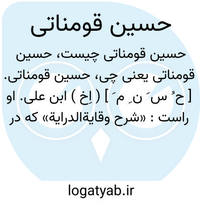 لغت نامه دهخدا حسین قومناتی. [ ح ُ س َ ن ِ م َ ] ( اِخ ) ابن علی. او راست: «شرح وقایةالدرایة» که در 832 هَ. ق. 1429/ م. تألیف کرده است. ( کشف الظنون ) ( معجم المؤلفین ). مرگ وی در هدیة العارفین ج 1 ص 315 در 840 هَ. ق. ذکر شده است.