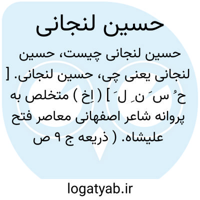 لغت نامه دهخدا حسین لنجانی. [ ح ُ س َ ن ِ ل َ ] ( اِخ ) متخلص به پروانه شاعر اصفهانی معاصر فتح علیشاه. ( ذریعه ج 9 ص 157 ).
