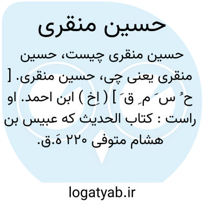 لغت نامه دهخدا حسین منقری. [ ح ُ س َ م ِ ق َ ] ( اِخ ) ابن احمد. او راست: کتاب الحدیث که عبیس بن هشام متوفی 220 هَ.ق. آن را از وی روایت کرده است. ( ذریعه ج 6 ص 223 ).