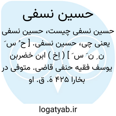 حسین نسفی. [ ح ُ س َ ن ِ ن َ س َ ] ( اِخ ) ابن خضربن یوسف فقیه حنفی قاضی. متوفی در بخارا 425 هَ. ق. او راست: «فتاوی ». ( معجم المؤلفین از کشف الظنون ). و در هدیة العارفین ج 1 ص 309 نام او حسن وکنیتش ابوعلی و مرگش در 428 هَ. ق. یاد شده است.