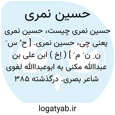 حسین نمری. [ ح ُ س َ ن ِ ن َ م َ ] ( اِخ ) ابن علی بن عبداﷲ مکنی به ابوعبداﷲ لغوی شاعر بصری. درگذشته 385 هَ. ق. 995/ م. اوراست: «اسماء الفضة و الذهب » و جز آن. ( معجم المؤلفین از بغیة الوعاة 235 ) ( کشف الظنون ) ( روضات الجنات ) ( هدیة العارفین ج 1 ص 306 ) ( یتیمة الدهر ج 2 ص 126 ).