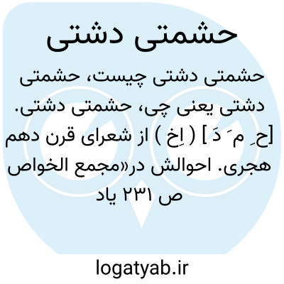 لغت نامه دهخدا حشمتی دشتی. [ح ِ م َ دَ ] ( اِخ ) از شعرای قرن دهم هجری. احوالش در«مجمع الخواص ص 231 یاد شده است. ( ذریعه ج 9 ص 256 ).
