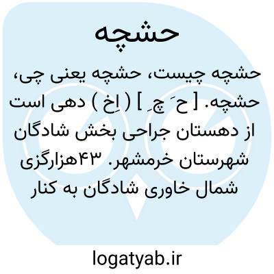 حشچه. [ ح َ چ ِ ] ( اِخ ) دهی است از دهستان جراحی بخش شادگان شهرستان خرمشهر. 43هزارگزی شمال خاوری شادگان به کنار رودخانه جراحی کنار راه فرعی اتومبیل رو خلف آباد به شادگان، دشت، گرمسیر مالاریایی. سکنه 200 تن شیعی مذهب. فارسی و عربی زبان. آب آن از رودخانه جراحی. محصولات آنجا غلات. شغل اهالی زراعت، حشم داری. صنایع دستی عبابافی. راه در زمستان اتومبیل رو. ساکنین از طایفه آل ابوغبیش هستند. این آبادی از دو محل مشهور به حشچه 1 و2 تشکیل شده است. ( از فرهنگ جغرافیایی ایران ج 6 ).