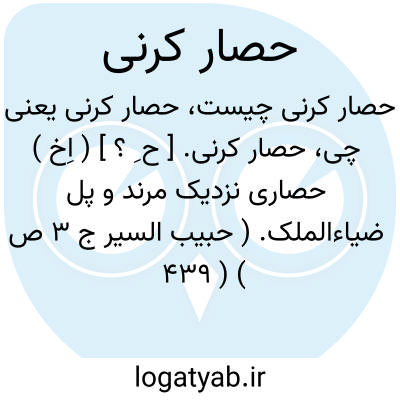 حصار کرنی. [ ح ِ ؟ ] ( اِخ ) حصاری نزدیک مرند و پل ضیاءالملک. ( حبیب السیر ج 3 ص 439 ) ( نزهة القلوب ).