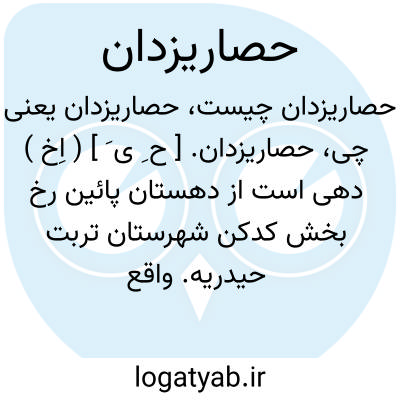 حصاریزدان. [ ح ِ ی َ ] ( اِخ ) دهی است از دهستان پائین رخ بخش کدکن شهرستان تربت حیدریه. واقع در 28هزارگزی شمال خاوری کدکن و 4هزارگزی خاور کال چغوکی. ناحیه ای است واقع در دشت. معتدل. دارای 304تن سکنه میباشد. فارسی زبانند. از قنات مشروب میشود.محصولات آنجا غلات، پیاز. اهالی به کشاورزی، گله داری،کرباس بافی گذران میکنند. راه مالرو است. از دهنو میتوان اتومبیل برد. ( از فرهنگ جغرافیایی ایران ج 9 ).