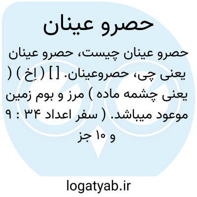 حصروعینان. [ ] ( اِخ ) ( یعنی چشمه ماده ) مرز و بوم زمین موعود میباشد. ( سفر اعداد 34: 9 و 10 جز 47: 17 و 48: 1 ). یورتر بر آن است که این دو اسم دو ده میباشند که بمسافت شصت میل بمشرق شمال شرقی دمشق مسافت دارد و در آنجا چشمه های چندی است که از زمین میجوشد و ستونهای شکسته و آثار خرابیهای دیگر نیز موجود است. اما کوک بر آن است که حصر و عینان همان چشمه های داره میباشد و آن چشمه ای است که در وسط سلسله کوه های شرقی واقع است. ( قاموس کتاب مقدس ).