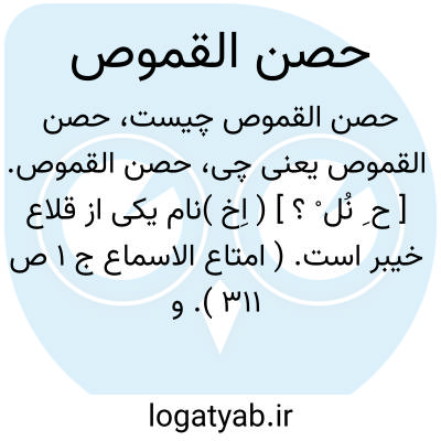 حصن القموص. [ ح ِ نُل ْ ؟ ] ( اِخ )نام یکی از قلاع خیبر است. ( امتاع الاسماع ج 1 ص 311 ). و در نصاب الصبیان با عین معجمه بجای قاف آمده است.