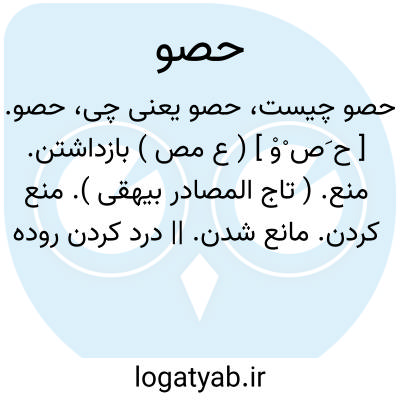 حصو. [ ح َص ْوْ ] ( ع مص ) بازداشتن. منع. ( تاج المصادر بیهقی ). منع کردن. مانع شدن. || درد کردن روده ها. ( آنندراج ). || حصو یا حصی ارض؛ سنگ ریزه ناک شدن آن. سنگ ریزه شدن کمیز در مثانه. ( یادداشت مؤلف ). || زدن کسی یا چیزی با سنگ ریزه. و رجوع به ذیل قوامیس دزی ج 1 ص 297 شود.