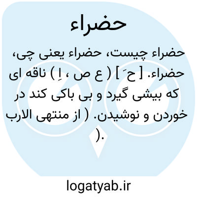 حضراء. [ ح َ ] ( ع ص، اِ ) ناقه ای که بیشی گیرد و بی باکی کند در خوردن و نوشیدن. ( از منتهی الارب ).