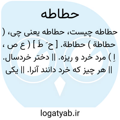 ( حطاطة ) حطاطة. [ ح َ طَ ] ( ع ص، اِ ) مرد خرد و ریزه. || دختر خردسال. || هر چیز که خرد دانند آنرا. || یکی حَطاط. یعنی یکی از دمیدگیهای روی و سر نره که ریم دهد و قرحه نکند. ( منتهی الارب ). یکی بثره و دانه از دمیدگیهای روی. برجستگی روی. ( مهذب الاسماء ). بردمیدگی روی.