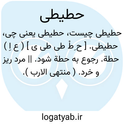 لغت نامه دهخدا حطیطی. [ ح ِطْ طی طی ی ] ( ع اِ ) حطة. رجوع به حطة شود. || مرد ریز و خرد. ( منتهی الارب ).