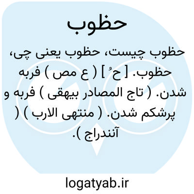 حظوب. [ ح ُ ] ( ع مص ) فربه شدن. ( تاج المصادر بیهقی ) فربه و پرشکم شدن. ( منتهی الارب ) ( آنندراج ).