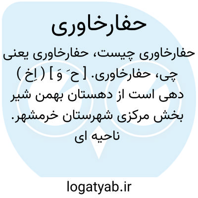 حفارخاوری. [ ح َ وَ ] ( اِخ ) دهی است از دهستان بهمن شیر بخش مرکزی شهرستان خرمشهر. ناحیه ای است واقع در دشت و گرمسیری است. دارای 1000 تن سکنه می باشد. از رودخانه کارون مشروب میشود. محصولاتش سبزیجات. راه در تابستان اتومبیل رو است. ساکنین از طایفه محیسن هستند. ( از فرهنگ جغرافیائی ایران ج 6 ).