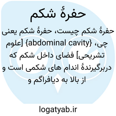 {abdominal cavity} [علوم تشریحی] فضای داخل شکم که دربرگیرندۀ اندام های شکمی است و از بالا به دیافراگم و از پایین به حفرۀ لگنی منتهی می شود