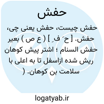 حفش. [ ح َ ف ِ ] ( ع ص ) بعیر حفش السنام؛ اشتر پیش کوهان ریش شده ازاسفل تا به اعلی با سلامت بن کوهان. ( منتهی الارب ).