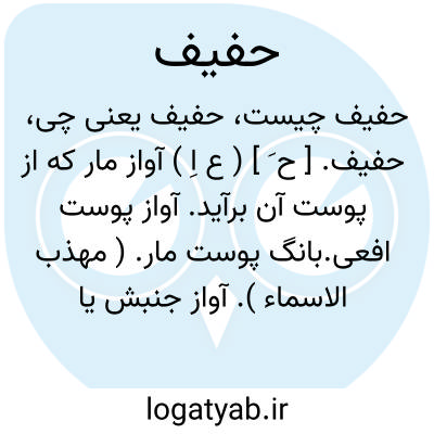 حفیف. [ ح َ ] ( ع اِ ) آواز مار که از پوست آن برآید. آواز پوست افعی.بانگ پوست مار. ( مهذب الاسماء ). آواز جنبش یا رفتن افعی. || آواز بال مرغ در پریدن. ( منتهی الارب ). آواز بال مرغان. بانگ پر مرغ. ( مهذب الاسماء ).