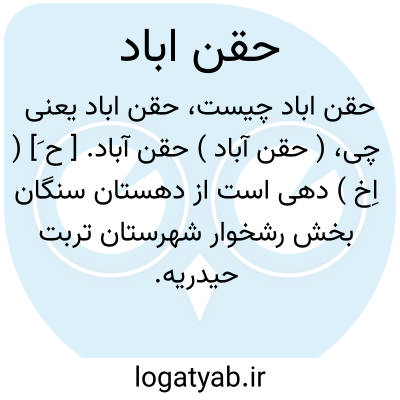 ( حقن آباد ) حقن آباد. [ ح َ] ( اِخ ) دهی است از دهستان سنگان بخش رشخوار شهرستان تربت حیدریه. واقع در 27هزارگزی شمال باختری رشخوارو 9هزارگزی جنوب سنگان. ناحیه ای است واقع در جلگه با آب و هوای گرمسیر. دارای 380 تن سکنه میباشد. از قنات مشروب میشود. محصولاتش غلات، پنبه و بنشن است. اهالی به کشاورزی، گله داری و قالیچه بافی گذران می کنند. راه آن مالرو است. ( از فرهنگ جغرافیائی ایران ج 9 ).