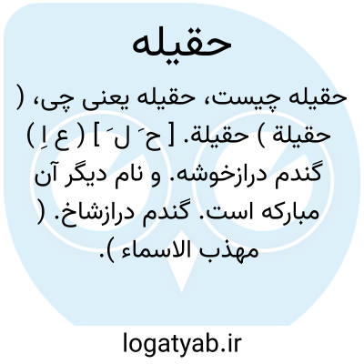 ( حقیلة ) حقیلة. [ ح َ ل َ ] ( ع اِ ) گندم درازخوشه. و نام دیگر آن مبارکه است. گندم درازشاخ. ( مهذب الاسماء ). || آب تره در روده ها. حقال. حقل. ج، حقائل. ( منتهی الارب ) ( آنندراج ). || خرمای تباه که فروریزد از درخت. ( منتهی الارب ).
