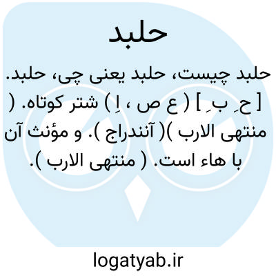لغت نامه دهخدا حلبد. [ ح ِ ب ِ ] ( ع ص، اِ ) شتر کوتاه. ( منتهی الارب )( آنندراج ). و مؤنث آن با هاء است. ( منتهی الارب ).