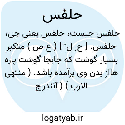 حلفس. [ ح ِ ل َ ] ( ع ص ) متکبر بسیار گوشت که جابجا گوشت پاره هااز بدن وی برآمده باشد. ( منتهی الارب ) ( آنندراج ). || گوسفند بسیار گوشت. ( از اقرب الموارد ).