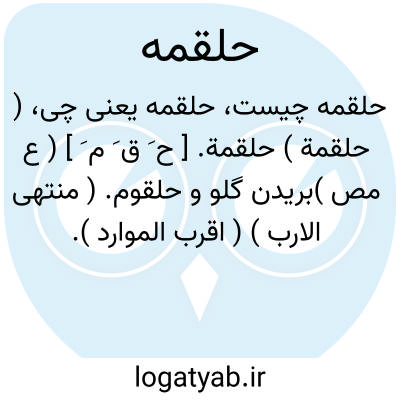 ( حلقمة ) حلقمة. [ ح َ ق َ م َ ] ( ع مص )بریدن گلو و حلقوم. ( منتهی الارب ) ( اقرب الموارد ).