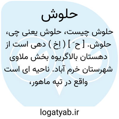 حلوش. [ ح َ ] ( اِخ ) دهی است از دهستان بالاگریوه بخش ملاوی شهرستان خرم آباد. ناحیه ای است واقع در تپه ماهور، گرمسیر و مالاریایی. دارای 200 تن سکنه میباشد. اهالی فارسی زبانند. از چشمه حلوش مشروب میشود. محصولاتش غلات و لبنیات است. اهالی به کشاورزی و گله داری گذران میکنند. راه آن مالرو است. ساکنین از طایفه میررضائی هستند. ( از فرهنگ جغرافیائی ایران ج 6 ).