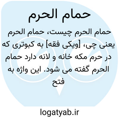 [ویکی فقه] به کبوتری که در حرم مکه خانه و لانه دارد حمام الحرم گفته می شود.