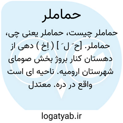 حماملر. [ح َ ل َ ] ( اِخ ) دهی از دهستان کنار بروژ بخش صومای شهرستان ارومیه. ناحیه ای است واقع در دره. معتدل و مالاریائی است. دارای 159 تن سکنه میباشد. از قنات و چشمه مشروب میشود. محصولاتش غلات، توتون، چغندر و حبوبات. راه آن مالرو است. و در تابستان از راه قولونجی میتوان اتومبیل برد. ( از فرهنگ جغرافیائی ایران ج 4 ).