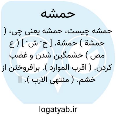 ( حمشة ) حمشة. [ ح َ ش َ ] ( ع مص ) خشمگین شدن و غضب کردن. ( اقرب الموارد ). برافروختن از خشم. ( منتهی الارب ). || سخت شدن. || ( ص ) مؤنث حَمش. ( منتهی الارب ) ( اقرب الموارد ).