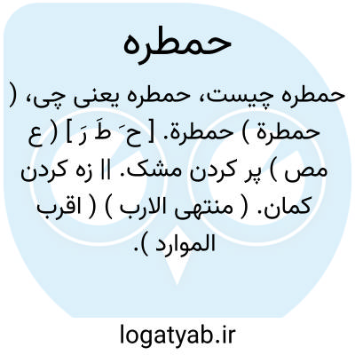 لغت نامه دهخدا ( حمطرة ) حمطرة. [ ح َ طَ رَ ] ( ع مص ) پر کردن مشک. || زه کردن کمان. ( منتهی الارب ) ( اقرب الموارد ).