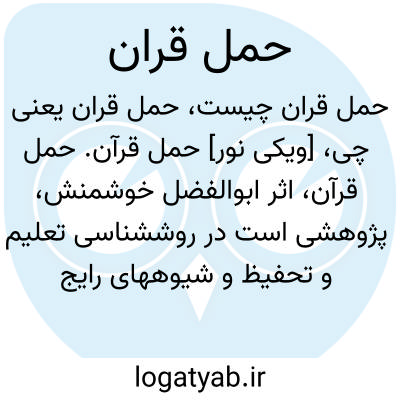 [ویکی نور] حمل قرآن. حمل قرآن، اثر ابوالفضل خوشمنش، پژوهشی است در روششناسی تعلیم و تحفیظ و شیوههای رایج در زمینه آموزش قرآن.