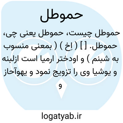 حموطل. [ ] ( اِخ ) ( بمعنی منسوب به شبنم ) و اودختر ارمیا است ازلبنه و یوشیا وی را تزویج نمود و یهوآحاز و صدقیا از او بوجود آمدند. ( 2 پادشاهان 23: 31 و در 2 پادشاهان 24: 18 ) ( قاموس کتاب مقدس ).