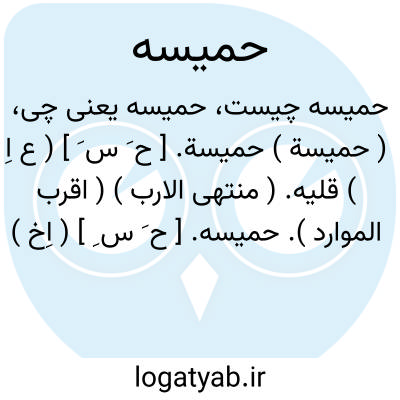 حمیسه. [ ح َ س ِ ] ( اِخ ) دهی است از دهستان قصبه نصار بخش قصبه معمره شهرستان آبادان. ناحیه ای است واقع در دشت و گرمسیری و مالاریائی. دارای 300 تن سکنه می باشد. از شطالعرب و لوله کشی خسروآباد مشروب میشود. محصولاتش حنا، مختصری انگور و خرما است. اهالی بغرس نخل، ماهیگیری، حصیربافی و گلاب گیری اشتغال دارند. راه آن در تابستان اتومبیل رو است. ساکنین از طایفه نصار هستند. ( از فرهنگ جغرافیایی ایران ج 6 ).