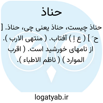 حناذ. [ ح َ ] ( ع اِ ) آفتاب. ( منتهی الارب ). از نامهای خورشید است. ( اقرب الموارد ) ( ناظم الاطباء ).