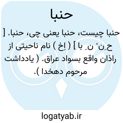 حنبا. [ ح ِن ْ ن ِ با ] ( اِخ ) نام ناحیتی از راذان واقع بسواد عراق. ( یادداشت مرحوم دهخدا ).