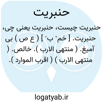حنبریت. [ حَم ْ ب َ ] ( ع ص ) بی آمیغ. ( منتهی الارب ). خالص. ( منتهی الارب ) ( اقرب الموارد ). کذب حنبریت؛ دروغ خالص. ( منتهی الارب ) ( ناظم الاطباء ) ( آنندراج ). || لاغر بسیارضعیف. ( اقرب الموارد ) ( ناظم الاطباء ) ( منتهی الارب ) ( آنندراج ).