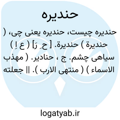 ( حندیرة ) حندیرة. [ ح ِ رَ] ( ع اِ ) سیاهی چشم. ج، حنادیر. ( مهذب الاسماء ) ( منتهی الارب ). || جعلته حندیرة عینی؛ آنرا نصب العین خویش کردم. ( منتهی الارب ). رجوع به حندر شود.