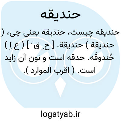 لغت نامه دهخدا ( حندیقة ) حندیقة. [ ح ِ ق َ ] ( ع اِ ) حُندوقَه. حدقه است و نون آن زاید است. ( اقرب الموارد ). سیاهی چشم و حدقه. ( ناظم الاطباء ).