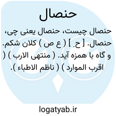 حنصال. [ ح ِ ] ( ع ص ) کلان شکم. و گاه با همزه آید. ( منتهی الارب ) ( اقرب الموارد ) ( ناظم الاطباء ). حِنصالَة. ( منتهی الارب ).