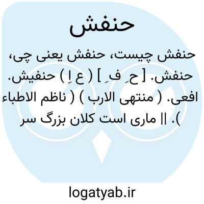 حنفش. [ ح ِ ف ِ ] ( ع اِ ) حنفیش. افعی. ( منتهی الارب ) ( ناظم الاطباء ). || ماری است کلان بزرگ سر نقطه دار ساکن: اذا حویتها [ حربتها ] انتفخ وریدها. یا حفّاث است. ( منتهی الارب ) ( ناظم الاطباء ) ( اقرب الموارد ).