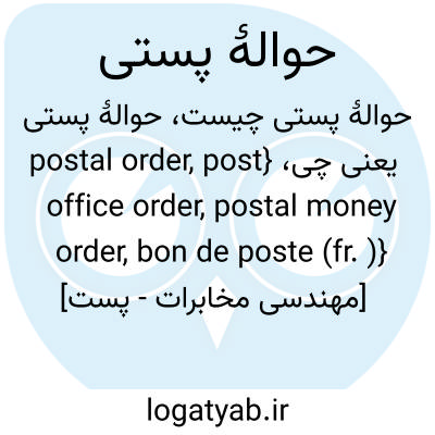 {postal order, post office order, postal money order, bon de poste (fr. )} [مهندسی مخابرات - پست] سند پرداخت غیرقابل انتقال یا قابل انتقال برای مبالغ کم در ادارات پُستی برخی از کشورها