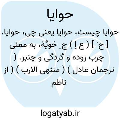 حوایا. [ ح َ ] ( ع اِ ) ج ِ حَویَّة، به معنی چرب روده و گردگی و چنبر. ( ترجمان عادل ) ( منتهی الارب ) ( از ناظم الاطباء ). رجوع به حویة شود.