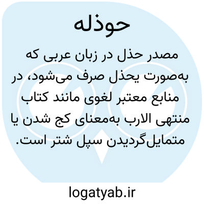 ( حوذلة ) حوذلة. [ح َ ذَ ل َ ] ( ع مص ) کج شدن سپل شتر. ( منتهی الارب ).