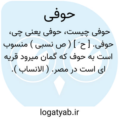 حوفی. [ ح َ ] ( ص نسبی ) منسوب است به حوف که گمان میرود قریه ای است در مصر. ( الانساب ).