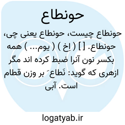 حونطاع. [ ] ( اِخ ) ( یوم... ) همه بکسر نون آنرا ضبط کرده اند مگر ازهری که گوید: نَطاع َ بر وزن قطام است. آبی است مر بنی تمیم را و آن چاهی است دارای آبی گوارا. در اینجا وقعه ای میان بنی سعد و هوةبن علی اتفاق افتاد. رجوع به مجمع الامثال میدانی شود.