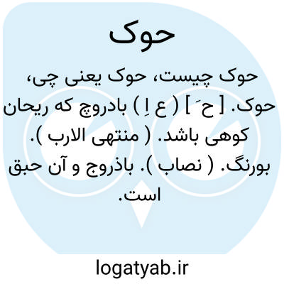 حوک. [ ح َ ] ( ع اِ ) بادروچ که ریحان کوهی باشد. ( منتهی الارب ). بورنگ. ( نصاب ). باذروج و آن حبق است. ( اقرب الموارد ). پادرو. ( مهذب الاسماء ). بارنگ بویه. بادرنگ بویه. ( السامی ). سبزی ای است مثل سپرغم که آنرا بونیک گویند و نازبونیز نامند. ( از غیاث ) ( آنندراج ). || خرفه. ( منتهی الارب ). بقلةالحمقاء. ( ناظم الاطباء ). || ( مص ) حیاک. حیاکة. بافتن جامه. ( منتهی الارب ) ( اقرب الموارد ). بافتن. ( تاج المصادر بیهقی ). کرباس بافتن. ( المصادر ). || ترتیب دادن شعر: حاک الشاعر شعره حوکا؛ ترتیب داد آنرا. || راسخ شدن: حاک الشی فی صدری؛ راسخ شد در سینه من. ( منتهی الارب ) ( اقرب الموارد ). || نمو دادن. بالاندن: حاک المطر الریاض انماها. ( اقرب الموارد ).