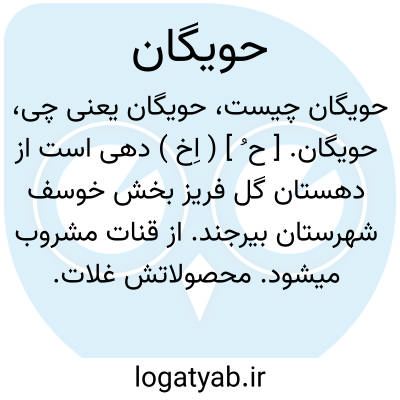 حویگان. [ ح ُ ] ( اِخ ) دهی است از دهستان گل فریز بخش خوسف شهرستان بیرجند. از قنات مشروب میشود. محصولاتش غلات. اهالی به کشاورزی گذران میکنند. راه آن مالرو است. ( از فرهنگ جغرافیایی ایران ج 9 ).