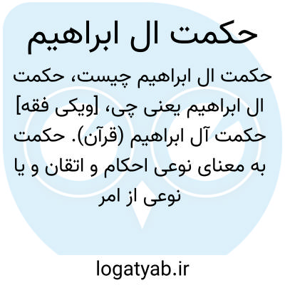 [ویکی فقه] حکمت آل ابراهیم (قرآن). حکمت به معنای نوعی احکام و اتقان و یا نوعی از امر محکم و متقن است، آن چنانکه هیچ رخنه و یا سستی در آن نباشد.