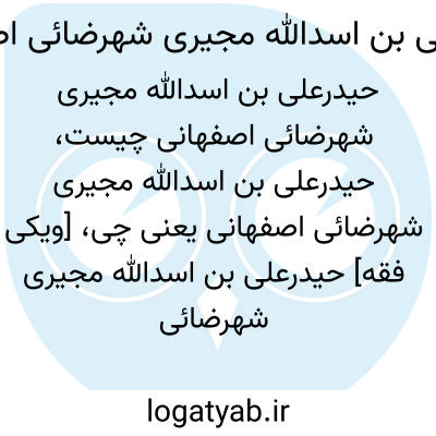 [ویکی فقه] حیدرعلی بن اسدالله مجیری شهرضائی اصفهانی، شاعر و ادیب معاصر اصفهان بوده است.
